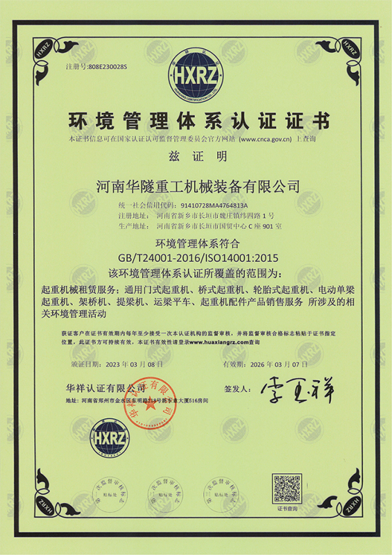 河南華隧重工機(jī)械裝備有限公司主要從事通用門式起重機(jī)、橋式起重機(jī)、電動(dòng)單梁起重機(jī),輪胎式起重機(jī)、架橋機(jī)、提梁機(jī)、遠(yuǎn)梁平車、鋼絲繩電動(dòng)萌蘆、卷揚(yáng)機(jī)、起重配件制造、銷售:起重機(jī)械租賃、安裝和維修,起重設(shè)備園收,機(jī)械設(shè)備維修,鋼結(jié)構(gòu)工程承包,橋梁工程及技術(shù)咨淘服務(wù),銷售五金制品、機(jī)電設(shè)備:建設(shè)工程監(jiān)理,建設(shè)工程設(shè)計(jì),各類工程建設(shè)活動(dòng),建筑勞務(wù)分包,建筑物折除作業(yè),施工作業(yè),工程管理服務(wù),土石方工程施工,裝如發(fā)運(yùn)。  公司已通過IS0國際質(zhì)量、環(huán)境、健康與安全三合一標(biāo)準(zhǔn)認(rèn)證,特種設(shè)備制造許可證和特種設(shè)備安裝改造維修許可證。擁有完熟的質(zhì)量管理體系。嚴(yán)格的管理制度,強(qiáng)大的生產(chǎn)能力和先進(jìn)的檢測手段,在保證產(chǎn)品質(zhì)量的同時(shí),也具備了極強(qiáng)的市場競爭力。  公司堅(jiān)持科技創(chuàng)新為理念,產(chǎn)品質(zhì)量為核心,注重信譽(yù),建立了減信可靠、快捷、思速。便利周到的售后服務(wù)網(wǎng)絡(luò)。  我們擁有的技術(shù)專家和技術(shù)服務(wù)隊(duì)伍為客戶提供充善的售前技術(shù)支持和全天候的售后服務(wù)體系,讓您無后顧之憂,享受一站式的超值服務(wù)。  “華隧重工,伴您成功“是華隧重工永遠(yuǎn)的宗指,真被的希望與各界朋友攜手并進(jìn)。共創(chuàng)輝準(zhǔn)!